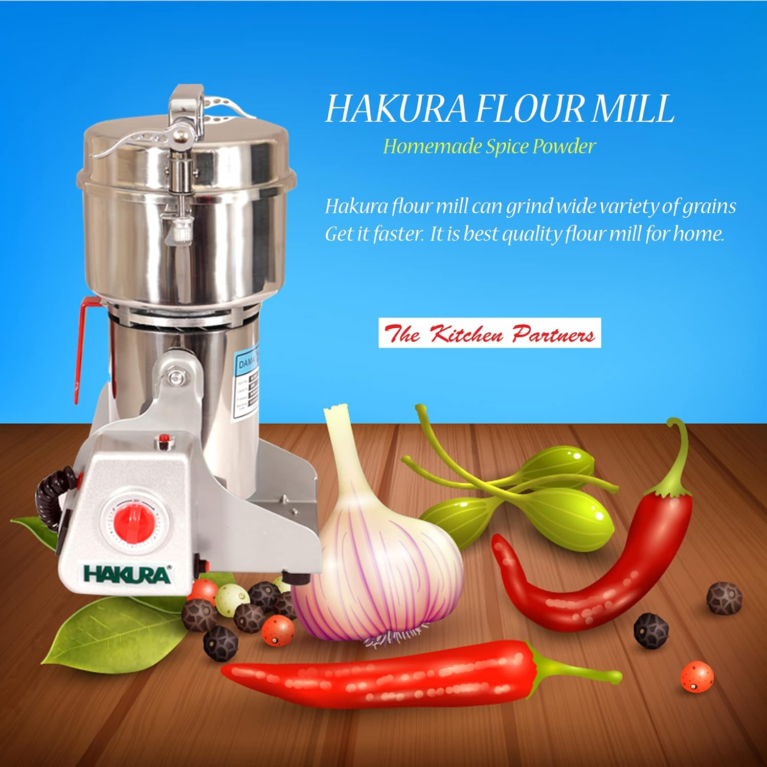 HAKURA 400gms High Speed 28000RPM| Domestic Mini Spice Mill | Stainless Steel Body | Compact | Easy use | 1500W | 230V
