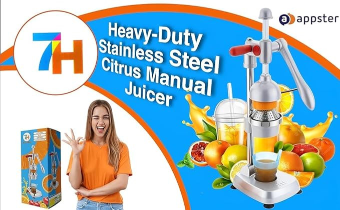 7H Heavy Duty Hand Press Juicer Machine - Manual Citrus Juice Maker & Orange Squeezer for Fruits & Vegetables - Double Polish