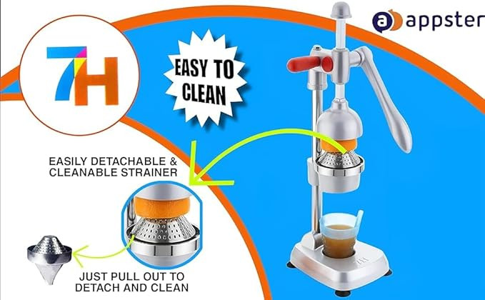 • Heavy Duty & Durable Build – Made with premium Aluminium, this manual juicer is strong, rust-resistant, and long-lasting; perfect for daily use in any kitchen.