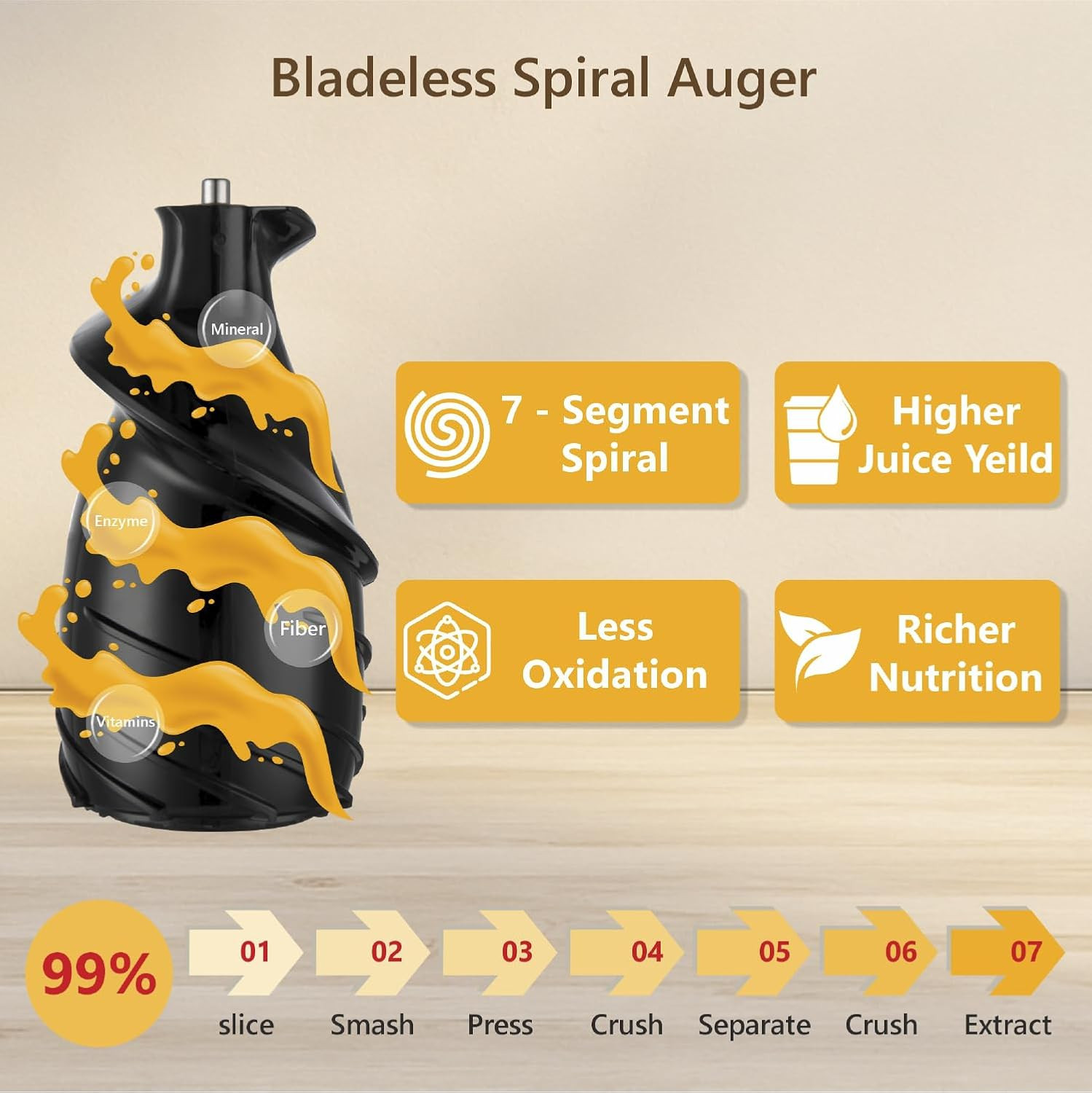 Easy to Clean & Assemble: - This cold press juicer features tool-free assembly and comes with a cleaning brush and dishwasher-safe parts, making clean-up quick and convenient.