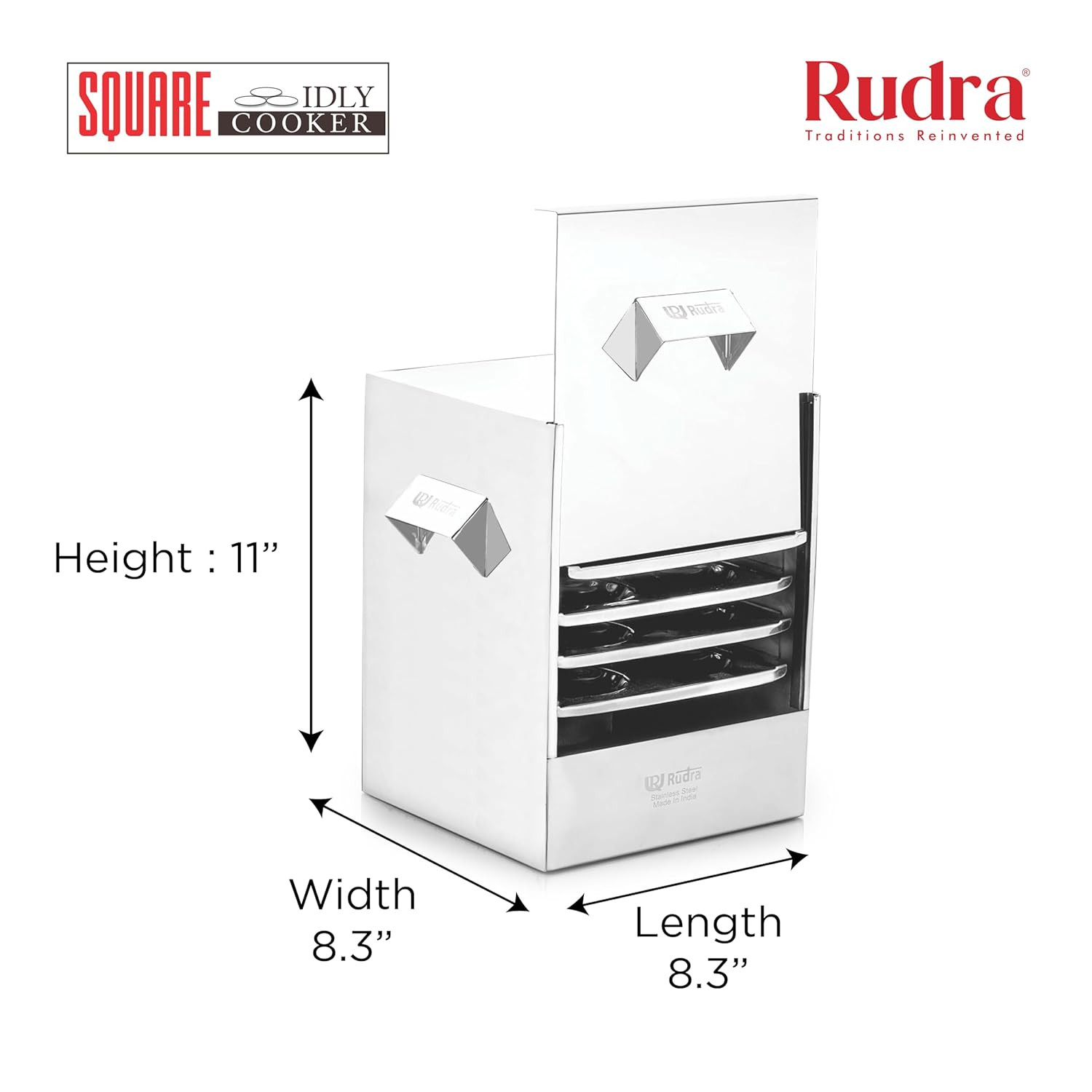 Enjoy fluffy, soft, and perfectly steamed idlis and momos with the Rudra Stainless Steel Square Idli Cooker/Momos Maker. Crafted from premium-quality stainless steel, this 4-plate steamer set is built for durability, hygiene, and high performance. Designed for both home and commercial use, it features a sturdy, rust-proof body, ensuring long-lasting performance. The ergonomic handles provide a safe, firm grip, while the efficient steaming mechanism preserves the authentic taste and texture of idlis, momos, dhoklas, and other steamed delicacies. Compatible with both gas stoves and induction cooktops, this steamer is a must-have for every modern kitchen. The square design enhances steam circulation, ensuring uniform cooking and faster results. Whether you are cooking for your family or a restaurant, the Rudra Idli Cooker is the perfect steaming solution.